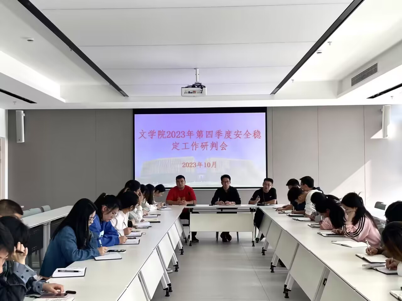 10月26日上午,我院在太阳集团网tyc9728406会议室召开2023年第四季度安全稳定工作研判会,党总支书记李赟、学工秘书徐远东、行政秘书陈俊、团总支书记何军华及全体辅导员参加了会议。此次会议由学工秘书徐远东主持。