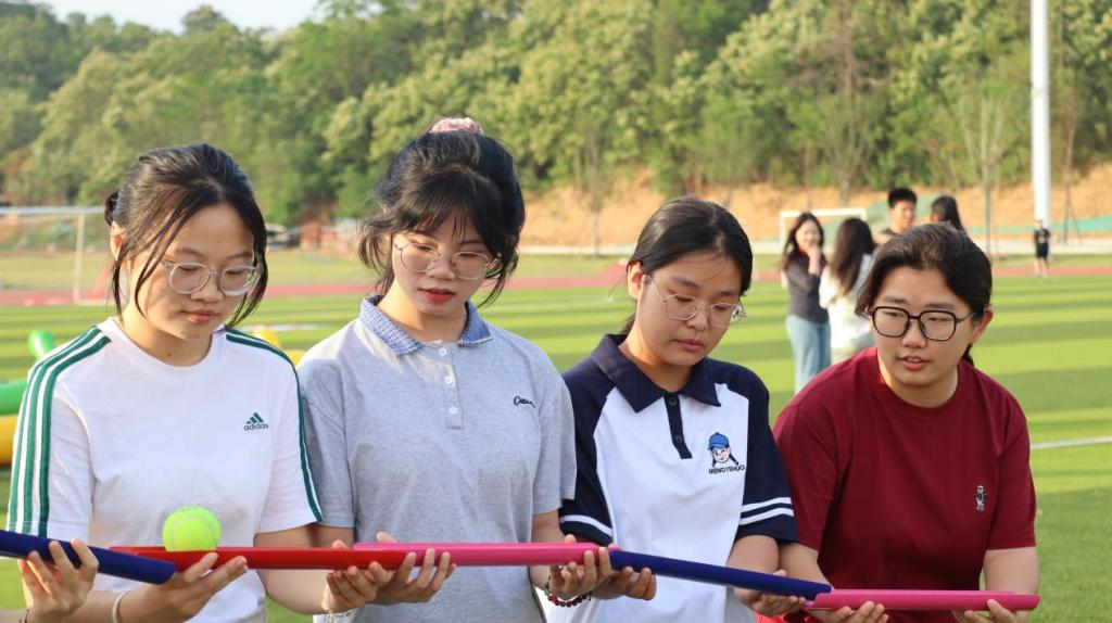 “珠行万里”游戏中,每队队员每人手持U型槽道具搭建轨道,小心翼翼地让乒乓球在轨道上滚动向终点的杯子。队员们全神贯注,接力配合,在这一过程中,不仅锻炼了团队协作能力,还培养了大家的耐心与专注力。