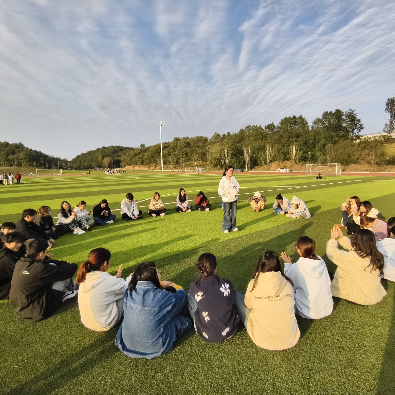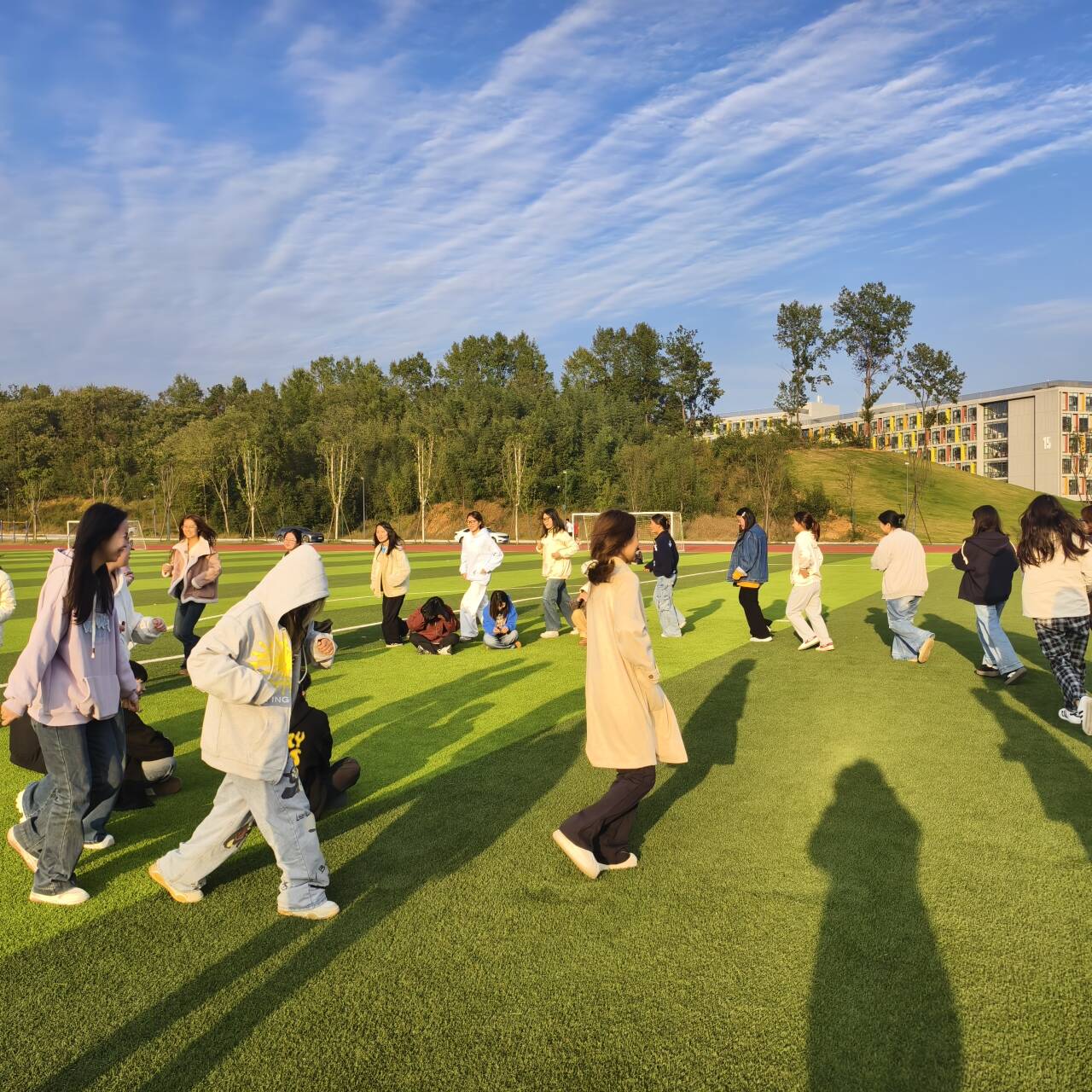 破冰环节之后,同学们继续开展“大风吹”游戏。站在中间的学生喊出“大风吹”,围坐在草地上的同学齐声回应“吹什么”。中间的学生需仔细观察周围同学的特征,并说出某一特征,具备该特征的同学则需迅速交换位置。这一游戏不仅锻炼了同学们的观察力与反应能力,也为大家提供了跨出宿舍小圈子、与更多同学互动交流的机会,有效拉近了彼此的距离,同时也促进了自我认知的深化。