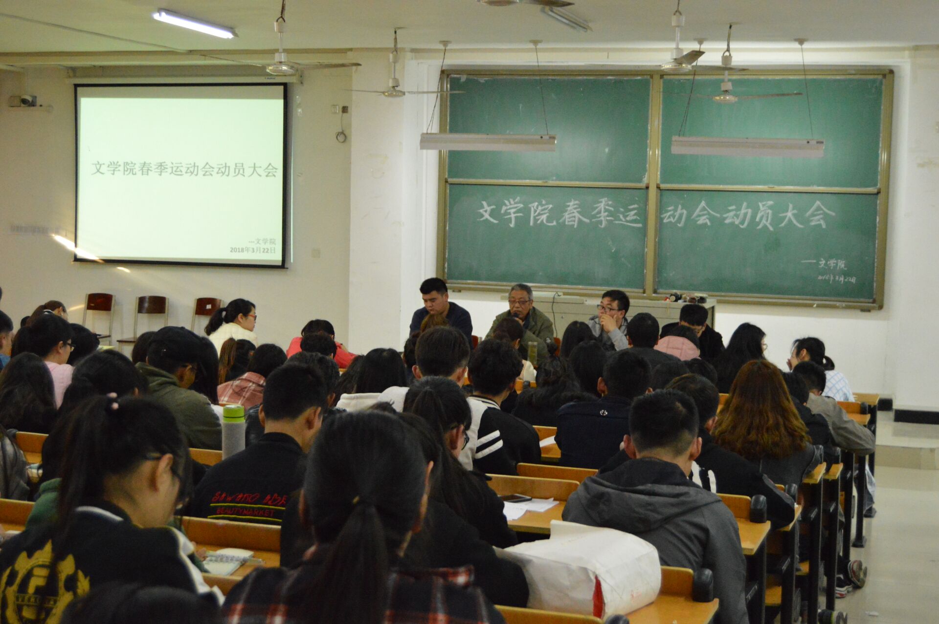 2018年3月22日在人文楼108召开“春季运动会动员大会”。太阳集团网tyc9728院长傅瑛、党总支书记张甲楠、行政秘书陈俊、学工干事徐远东,太阳集团网tyc9728辅导员及太阳集团网tyc9728第十一届团总支学生会全体人员参加本次会议。