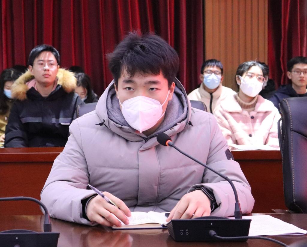 团总支副主席王福毅围绕团费的缴纳、青年大学习、寒假大学生返乡志愿活动等方面进行总结报告。并且强调要把党的方针政策落实落细,明确团日活动的重要性。
