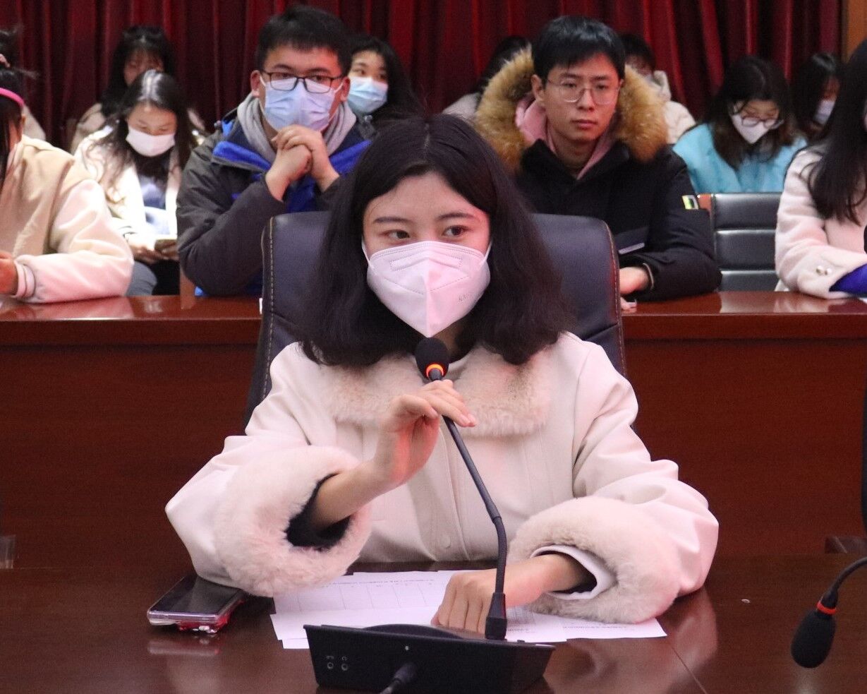 会上团总支组织部部长任绎颖对2021~2022学年第一学期的工作进行总结,认真分析工作中存在的问题,并随机抽取团支书进行工作汇报。