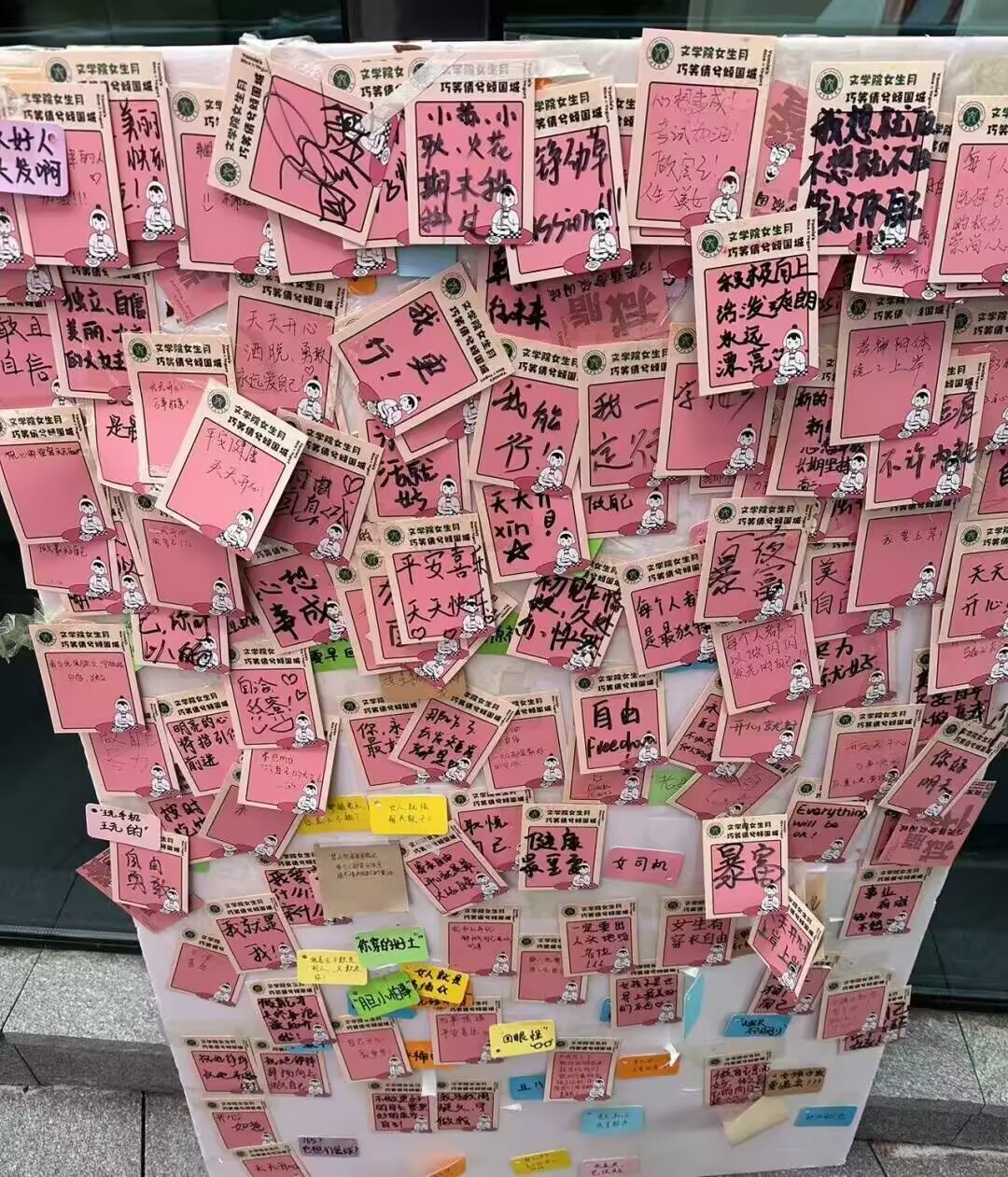 在“千千意,千千结”活动中,同学们领取红丝带后写下对彼此的祝福、建议或对自己未来的祈愿和憧憬,挂在帐篷处,一条条红丝带组成了一道靓丽的风景线;在“撕掉标签,拒绝刻板印象”活动中,同学们坚定地撕掉那些不好的标签,在贴上温馨的话语,展现了同学们的积极友善;“硬币跳舞”活动中,同学们凭借技巧赢得礼品;“接力画画”活动中,同学们相继拿起画笔填充自己心目中的颜色;更有“小马宝莉,友谊魔力”“笔墨传情,梦想同行”等多样的游戏方式,让同学们在活动中展现自我风采,传递彼此间的温馨与关怀。
