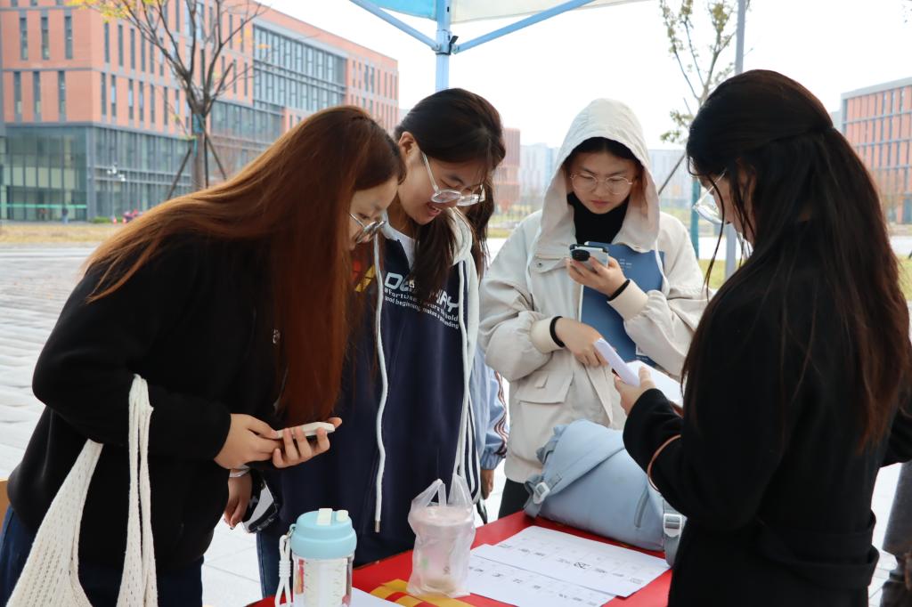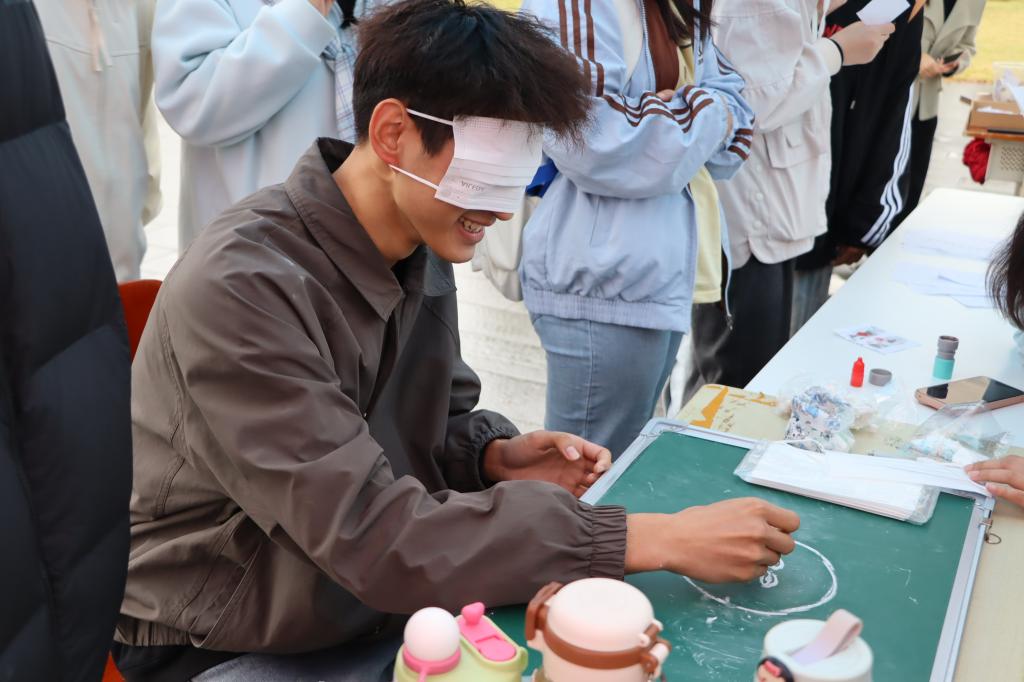 活动精心设置了八个趣味小游戏。“字海寻宝”“汉字猜猜乐”“Emoji解码诗词或成语”等游戏聚焦汉语言文化,或考验汉字辨识与组合能力,或带领同学们溯源古字形态、解码传统诗词,让大家在趣味挑战中触摸汉字根脉、深化文化认知;“影视你画我猜”“蒙眼画五官”则以轻松协作的形式,让参与者在演绎互动、添画五官的过程中卸下拘谨,歪扭线条与“神来之笔”交替出现,现场欢笑不断。