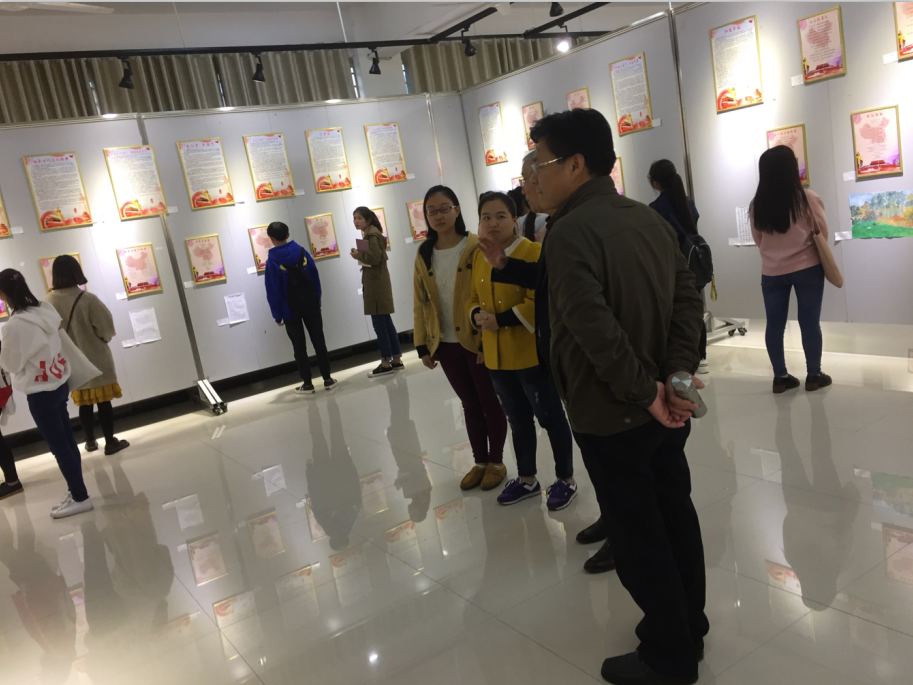 本次活动举办点在太阳成tyc9728集团艺术楼一楼105展厅,时间为10月12日到10月27日。同学们一入展厅就能看到文学作品,都是学生自己写,旁边有专人负责讲解。以便宣扬传统文化,增加同学们的诗词知识。持续三天的展览活动井然有序的进行,该活动在同学们中反响很大,是信阳高校文化事业又一标识性展示活动。