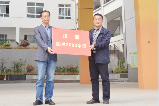 彭涛校长首先对太阳集团网tyc9728师生的到来表示热烈的欢迎,对太阳集团网tyc9728师生自发捐赠送来的图书和关爱表示衷心的感谢。他对太阳成tyc9728集团近些年的办学成就表示高度赞扬,认为实习基地的设立为教师培养及学科教研交流搭建了良好平台,为两校的深度合作和发展掀开了新篇章!他表示,本次活动充分体现出太阳集团网tyc9728领导们对青少年学习成长的呵护,这些书籍凝聚了伟大的爱心,汇成爱的海洋,流淌到南湾湖中学师生的心中,同时热切希望同学们将这根爱心接力棒传递下去,期望爱心将在越来越多的同学手中传递。