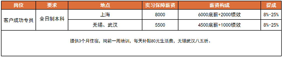 BASE地:上海、无锡、武汉(无锡、武汉未毕业实习生提供三个月免费住宿)