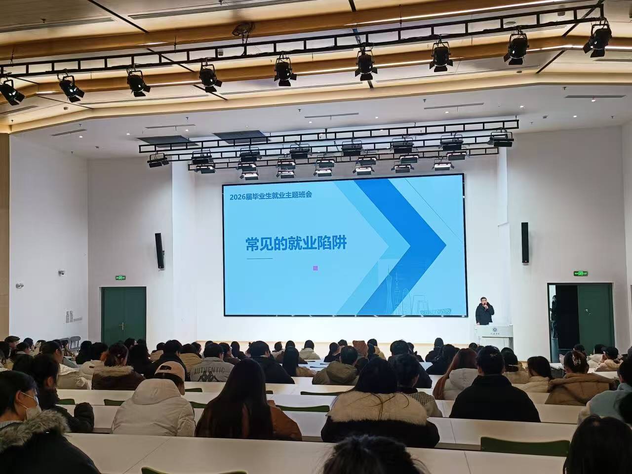 为切实提升2026届毕业生就业风险防范意识,帮助毕业生树立正确就业观,近日,我院组织各毕业班开展就业陷阱防范主题班会,本次班会以线上线下相结合的形式开展,为期一周,覆盖全体应届毕业生。