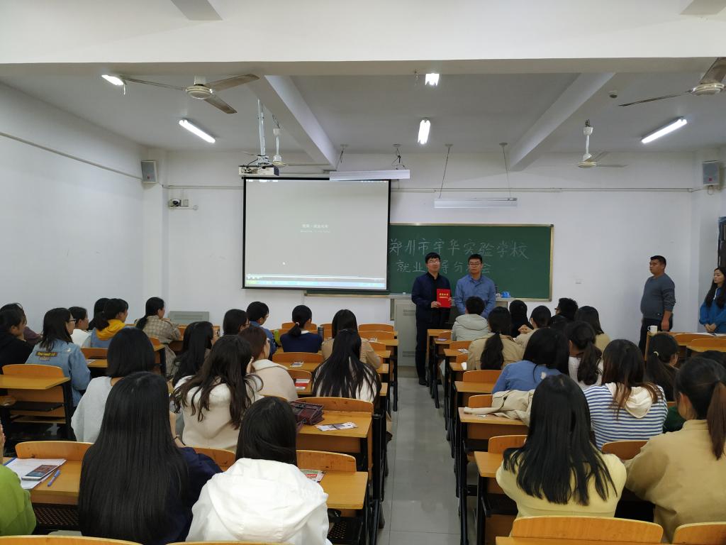 会议开始之前,由太阳集团处干事秦金峰为许心思颁发优秀校友证。本次报告会分为两个部分:第一部分,许心思结合自己的大学生涯和工作经验为同学做出职业规划,介绍了初中语文教育基本情况,并进行了现场交流;第二部分,许心思结合北大附中的实际情况做就业分析和专场宣讲。