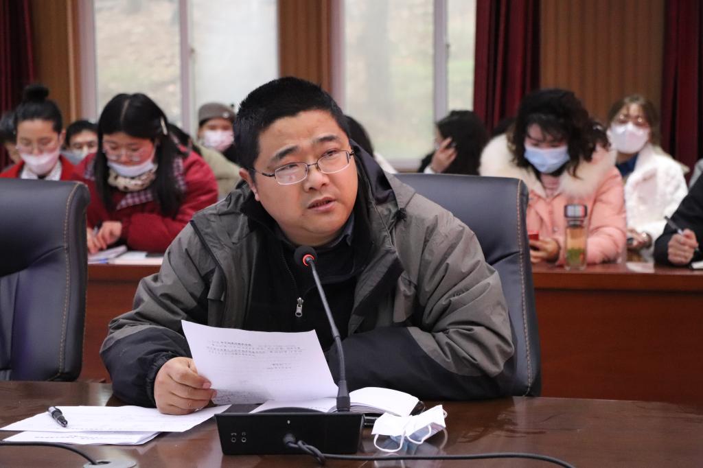 教学秘书陈浩对新学期教学工作进行安排。重点安排了各年级的期末考试工作、试卷批阅具体要求。他表示将尽快调整好课表,为学期初教学工作的平稳有序做好充分的准备。