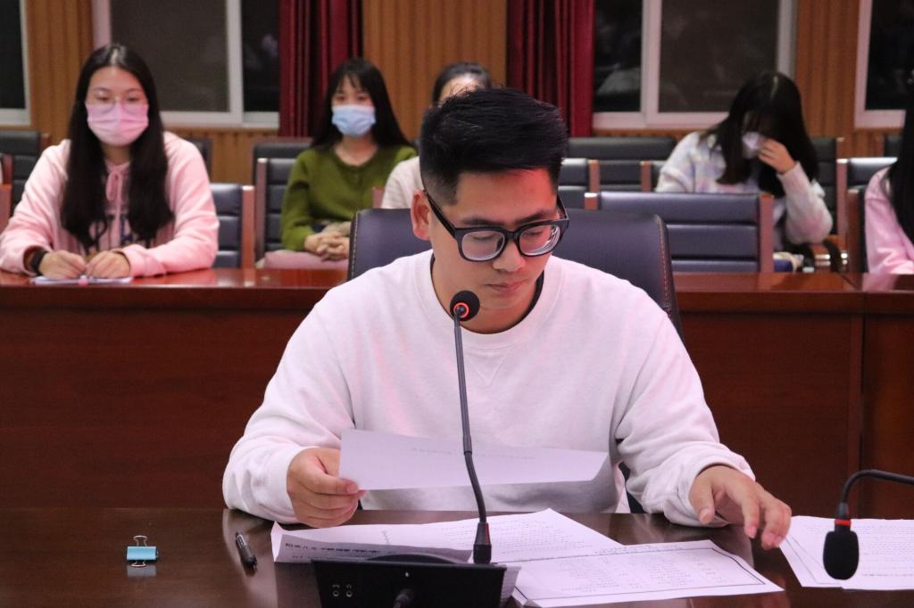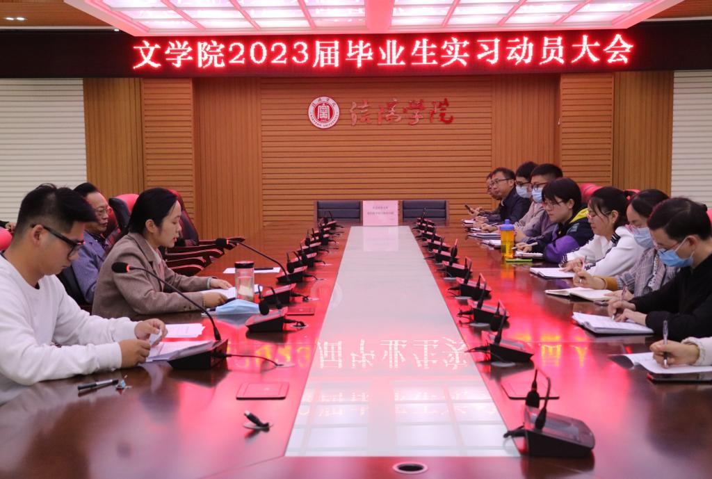 为进一步做好我院学生校外实习前的各项准备,推进实习工作的顺利开展。10月11日下午6点,我院在人文楼208会议室召开太阳集团网tyc97282023届毕业生实习动员大会。参加此次会议的有太阳集团网tyc9728院长毛正天、教学副院长黄亚妮、行政秘书陈俊以及2023届毕业班实习带队指导老师和毕业生学生干部。大会由章健老师主持。此次大会采取线上线下同时进行的形式,以便让更多的同学参与其中。