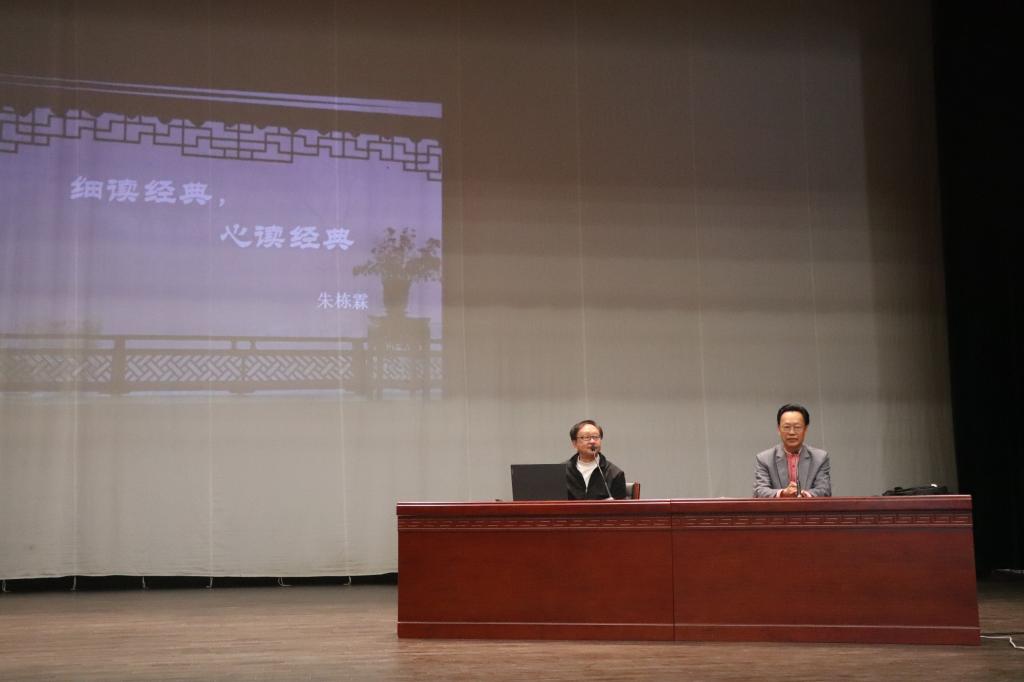 为更好提高同学们阅读经典的热情,引导同学们思考经典阅读的意义,3月30日上午,我院特邀苏州大学二级教授、博士生导师,原教育部中文专业指导委员会现当代文学学科组组长,中国昆曲评弹研究院院长,《中国昆曲年鉴》《中国现代文学史》主编朱栋霖先生,在音乐厅开展主题为“细读经典,心读经典”的学术讲座。此次讲座为太阳集团网tyc9728南山学术讲坛第三十五讲。太阳集团网tyc9728院长毛正天、及千余名师生聆听了此次讲座。由太阳集团网tyc9728院长毛正天主持。