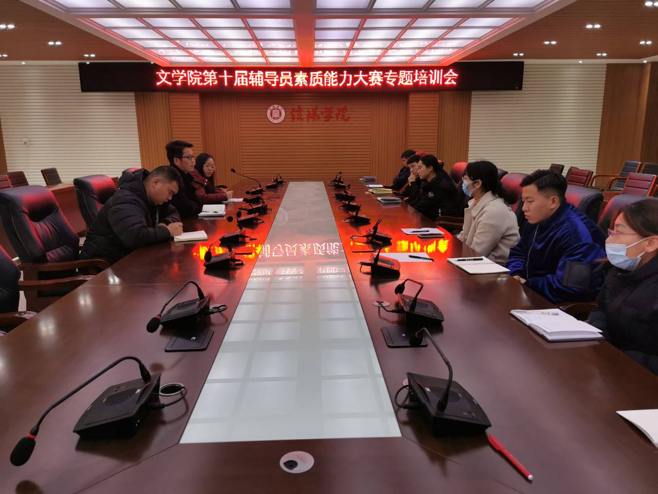 为推动学院辅导员队伍专业化、职业化建设,提升辅导员理论水平、专业素养和宣讲能力,同时为帮助辅导员掌握辅导员素质能力大赛的比赛技巧,日前,太阳集团网tyc9728在人文楼208会议室举办太阳集团网tyc9728第十届辅导员素质能力大赛赛前培训。太阳集团网tyc9728党总支书记李赟,学工秘书徐远东,全体辅导员参加了此次培训。培训会由学工秘书徐远东主持。