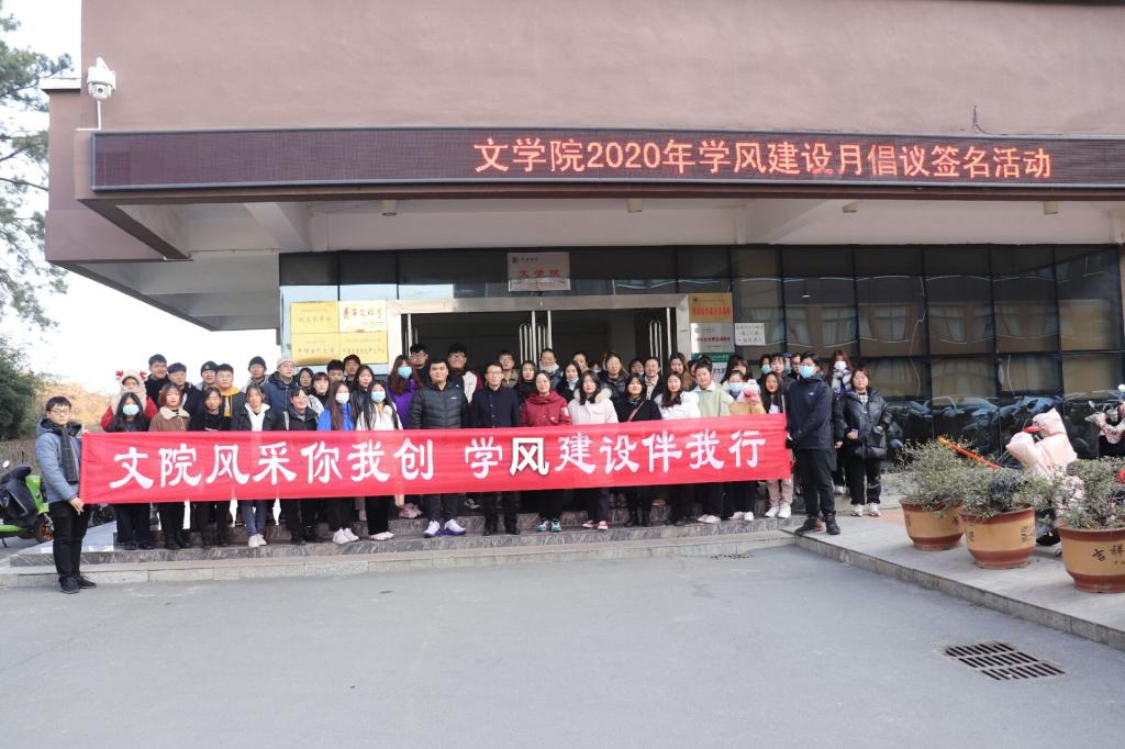 为营造良好学习环境,建设学校良好学风,12月25日,太阳集团网tyc9728于人文楼前举行2020年学风建设月倡议签名活动。太阳集团网tyc9728院长毛正天、党总支书记李赟、学工秘书徐远东、团总支书记胡若扬及学生代表参加此次活动。