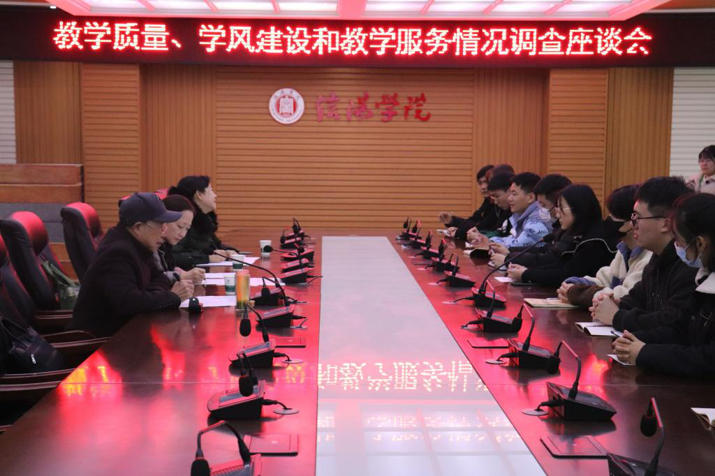 2021年12月7日下午13:00,校督导专家组在我院人文楼208会议室召开教学质量、学风建设和教学服务情况调查学生及教师座谈会。出席本次座谈会的有校督导专家组组长刘丽红教授、赵蕊蕊教授和邱德乐教授,我院教师和学生代表参加本次座谈会。
