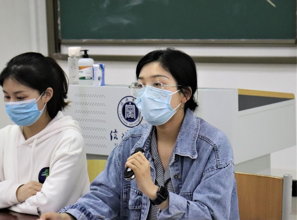 会上四名学子积极地为有考研意向的同学们解疑答惑,交流并分享他们的考研经历与经验。其中焦舟怡说在考研过程中不要因为别人的进度过度焦虑,要根据自己的情况制定适合自己的目标和计划,并实施行动。孟亚婧从院校选择、考试准备等方面向考研学子进行了介绍,并向大家提出来几条建设性建议。武喜乐从考研调剂方面进行了讲解,并向大家介绍了复试时候准备及特殊情况的应对。嵇鹏宇对考研学校的选择作了补充说明,表示调剂选择院校时要正视自己的能力选择相适应的学校。