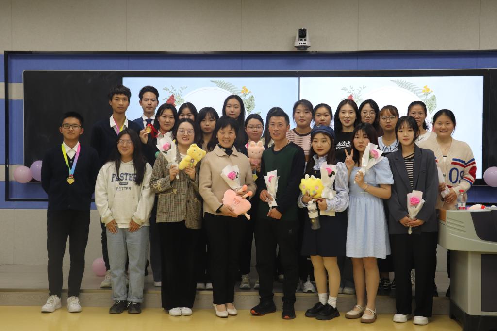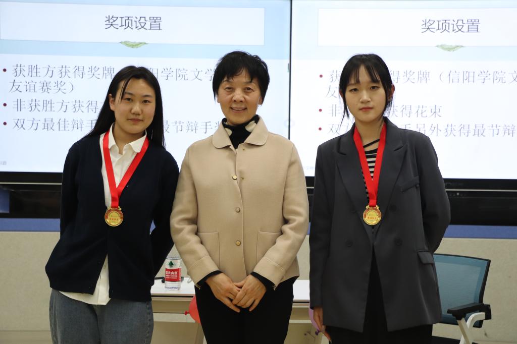 经评审团共同打分后,主持人公布此次比赛结果,正方三辩杜佳忆,反方四辩郭依婷获得最佳辩手奖,反方最终以9.27分的成绩赢得了本次辩论赛。活动最后由评委老师为获奖队员佩戴奖章,为正方辩论队送上鲜花,众人合影留念后,本次辩论赛圆满结束。